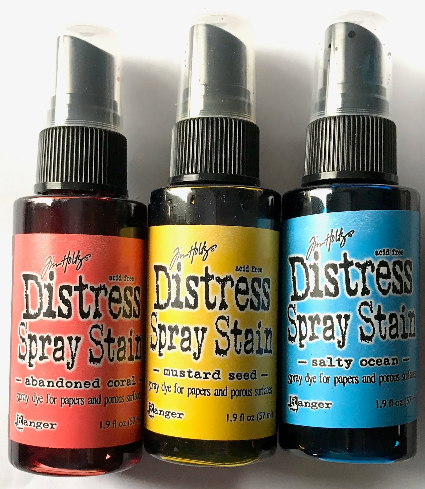 I have so enjoyed playing with these Distress sprays, challenging myself to include different colors, and seeing how they play together. Give it a try! It doesn't have to be spray stains; it could be inks, watercolors, even a box of crayons. Have fun with it!